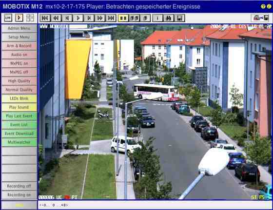 In der Player-Ansicht können Sie gespeicherte Ereignisse (im internen Bildspeicher der Kamera oder extern auf dem Dateiserver) betrachten oder herunterladen. Wenn Sie im Player erneut auf | ||